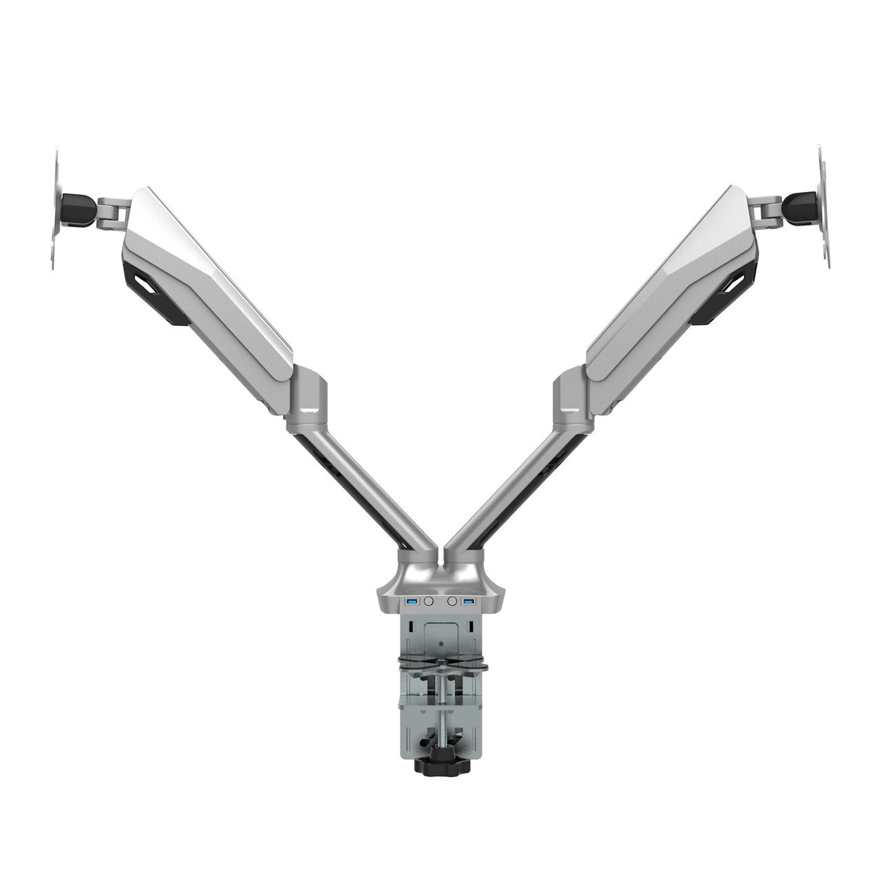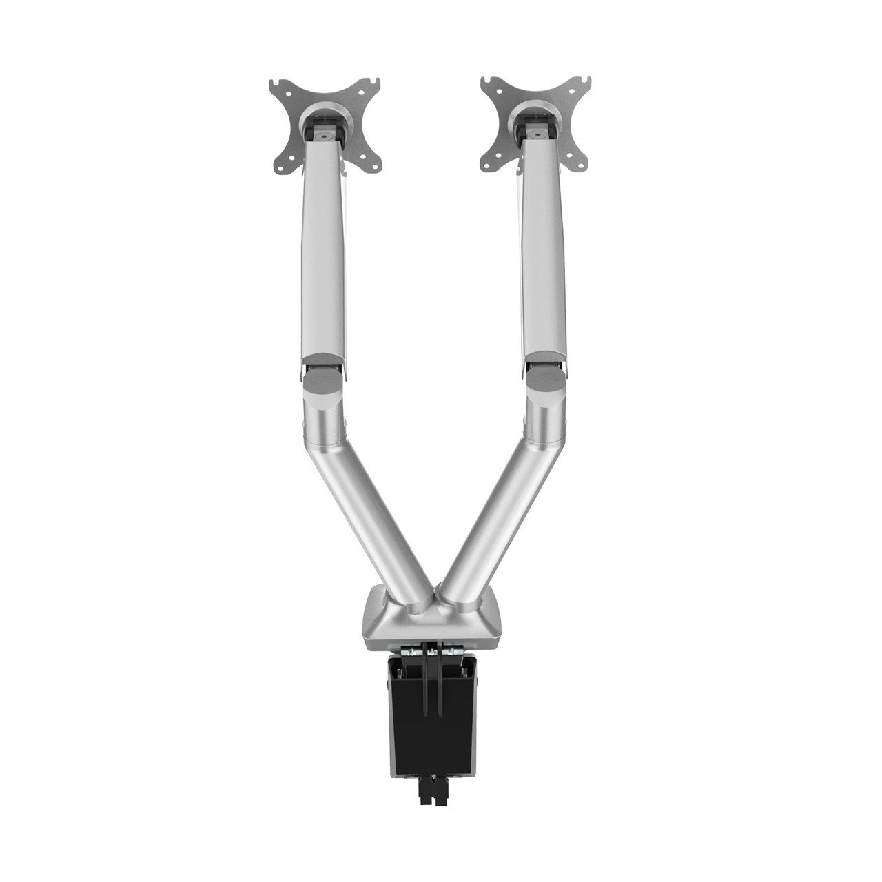 Using this dual black monitor arm, you will create so much extra and usable space on your desk. Not only is this dual monitor arm capable of rotating 360 degrees, but it can also adjust 85 degrees upward or 15 degrees downward to help you find the most ideal screen viewing position for both your monitors. The 360 degree rotation also enables you to share what is on your screen with others in the room, without anyone having to move from their seat!