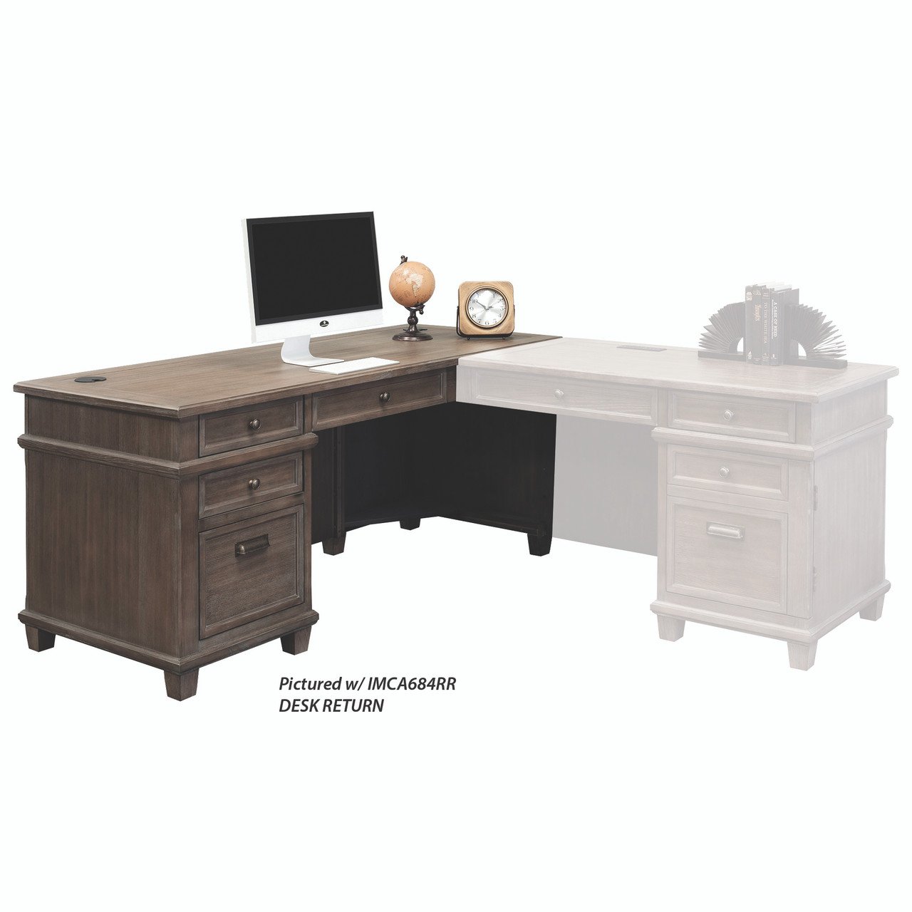 This right return desk, coming in a weathered dove gray finish, with mottled hardware, is your solution for a unique desk with an antique feel. The desk comes with one drop front keyboard pencil drawer, two utility drawers, one legal/letter file drawer, and two wire management grommets, while the return is equipped with one drop front keyboard pencil drawer, one utility drawer, one pull-out printer tray, two AC outlets, and three USB outlets, giving ample storage and working space. This desk and return must be sold as a set.