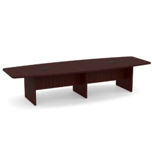 Conference room furniture needs to be durable and strong. This boat shaped conference room table has a strong construction, and also has the highest quality laminate surface. In order to strengthen this table’s durability factor, the laminate surface has PVC tough edging. This boat shaped conference table has a beautiful design. If you want your conference room to stand out, then this is the perfect high grade product to give the ambience an uplift. This table has wire grommets for efficient cable and cord management. This boat shaped conference table is available in your choice of eight beautiful finish options, so you can choose the one that best complements your existing decor.