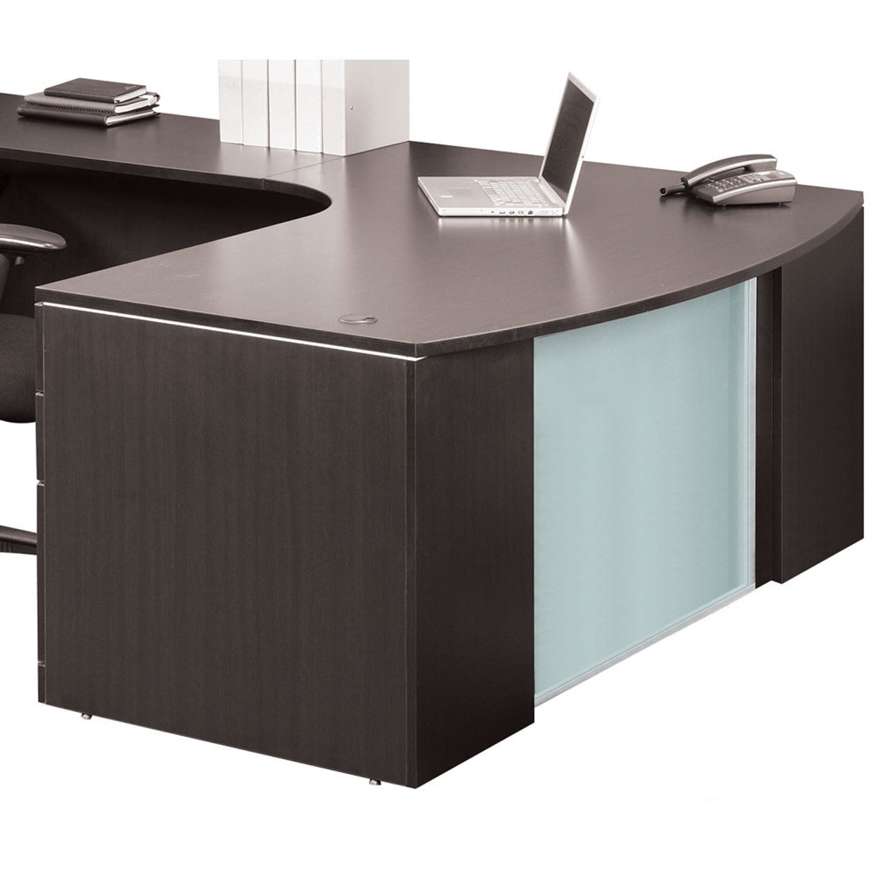 Add a touch of elegance to your reception desk, or to your customer-facing workstations with this glass modesty panel. This office furniture add-on works for the PL477, PL489, and PL401 desk tops only. This glass modesty panel is a durable choice in office furniture add-ons that will stand up to many years of use in the workplace. Installation is a snap, and in no time at all you’ll have that added level of privacy you’re looking for in your open front office desk.