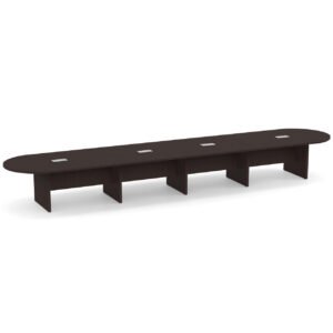 The Expandable OS Laminate Conference Tables collection features conference tables with attractive and durable laminate surfaces and a 3 mil PVC Tough Edge for superior durability. Racetrack style features 1-1/2” thick tops and bases. This racetrack shaped conference table can be merged with similar pieces to create your own tailored conference room. It can be perfect solution for any office with its versatile design, high quality hardware, and excellent laminate finishes. It comes with three grommets for easy access to power. This table is available in your choice of eight beautiful finish options so you can choose the one that best complements your existing decor.