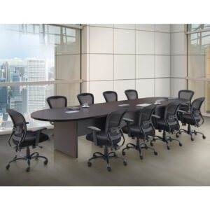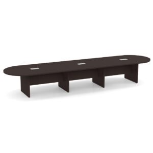 The Expandable OS Laminate Conference Tables collection features conference tables with attractive and durable laminate surfaces and a 3 mil PVC Tough Edge for superior durability. Racetrack style features 1-1/2” thick tops and bases. This racetrack shaped conference table can be merged with similar pieces to create your own tailored conference room. It can be perfect solution for any office with its versatile design, high quality hardware, and excellent laminate finishes. It comes with three grommets for easy access to power. This table is available in your choice of eight beautiful finish options so you can choose the one that best complements your existing decor.