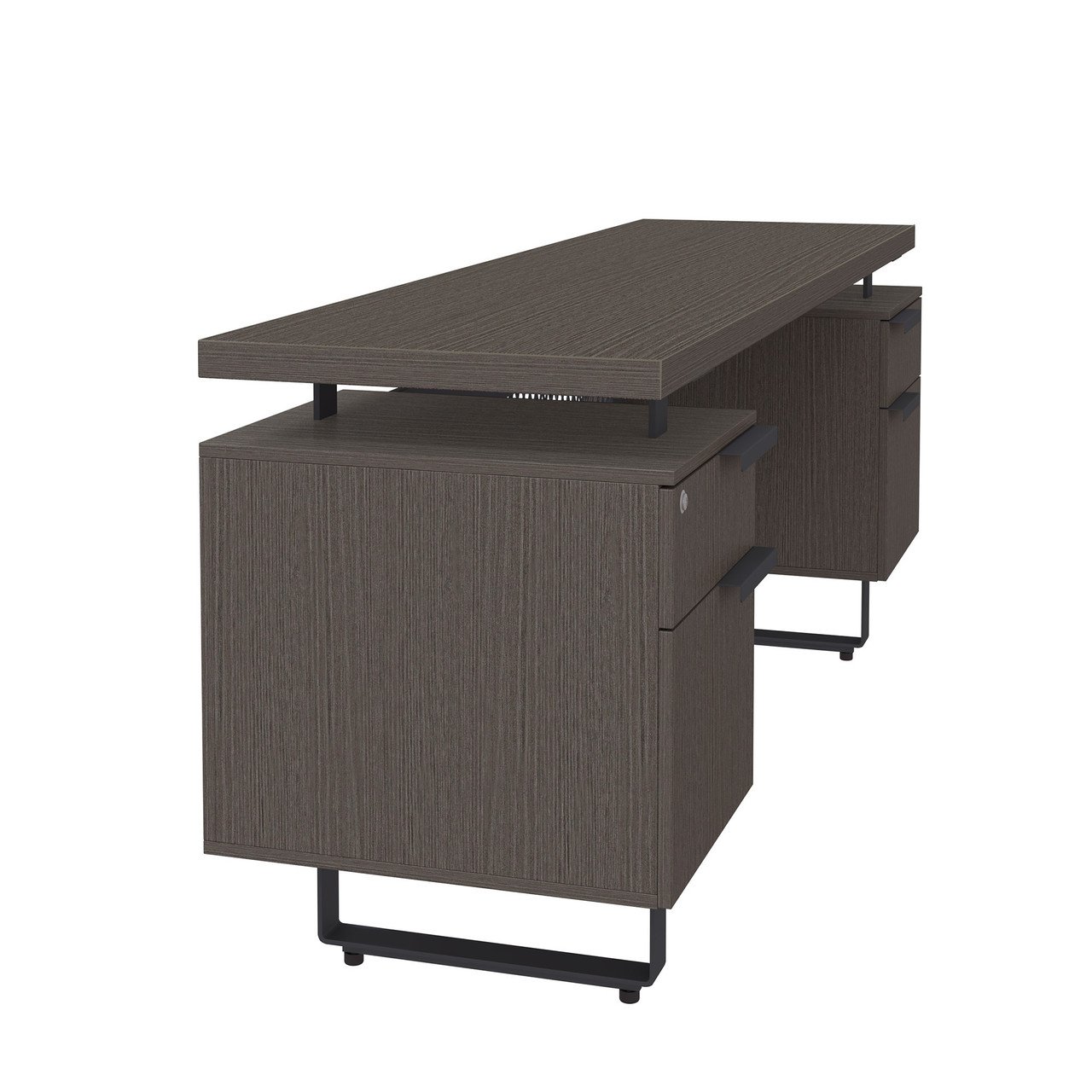 - A 1⅝” thick work surface floats effortlessly above sleek