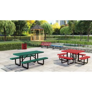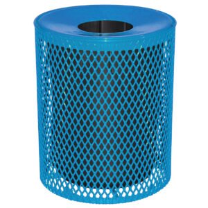 32-Gallon Expanded Receptacle is made from welded steel. It is available in a variety of bright colors. They are fade and water resistant. A customized logo or words can be cut into the steel of the receptacle.