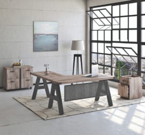 Modern design meets rustic with the Riveted Collection 2 Drawer Later File. The distressed wood lamented finish creates a reclaimed aesthetic. Full files drawers with locking capabilities for added security.