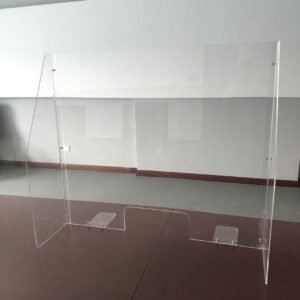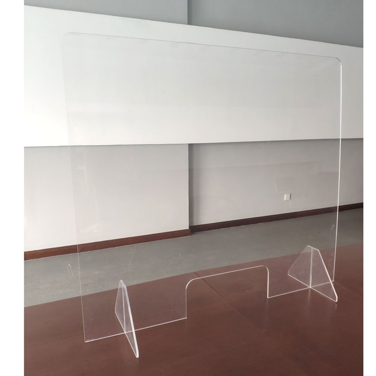 This freestanding countertop desktop screen is a quick and inexpensive way to protect your counter or desk area. It has two side panels for added protection when space allows. The 4.75″ high by 11.75″ wide pass through opening is perfect for exchanging payment or items at customer service and sales counters and desks. Made from clear acrylic plastic that protects while providing unobstructed visibility.