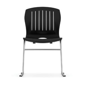 The Armless Sled Base Stack Chair features a sturdy chrome base with durable polypropylene seats. It comes a variety of seat colors. The chairs are stackable.