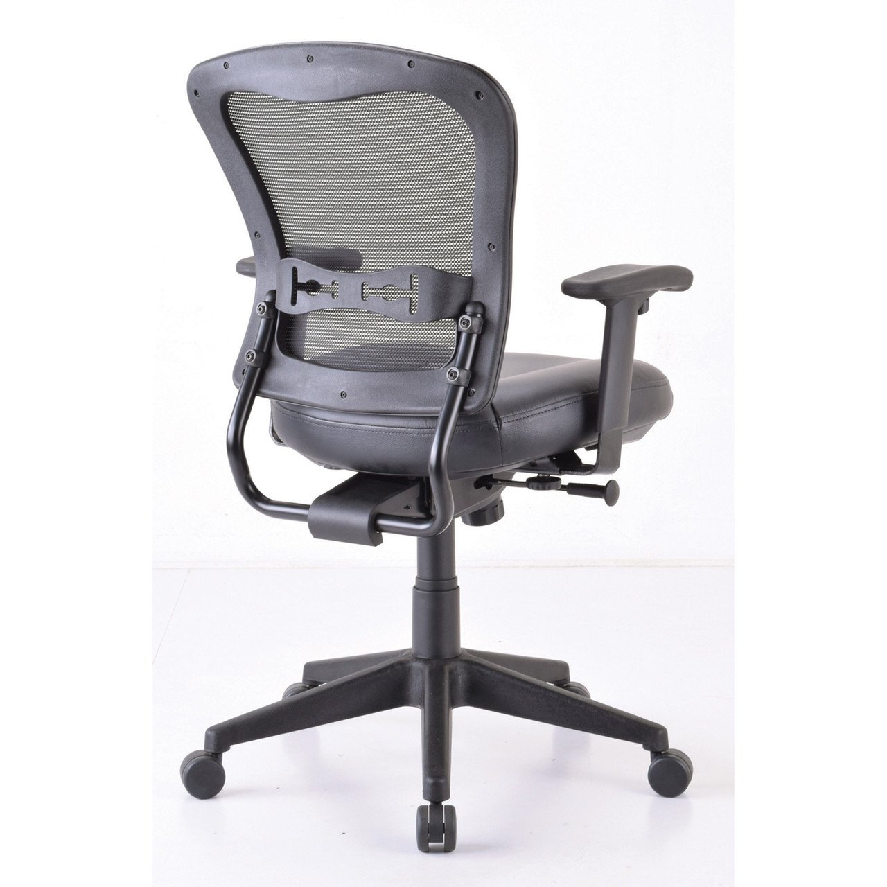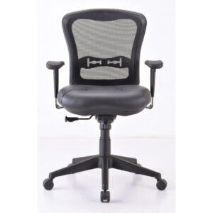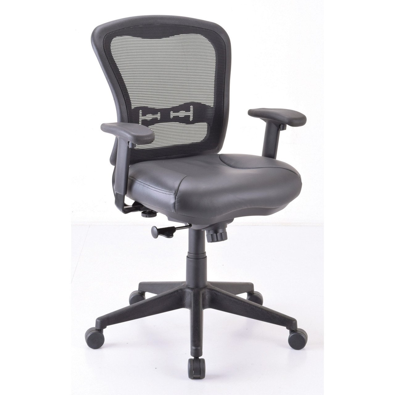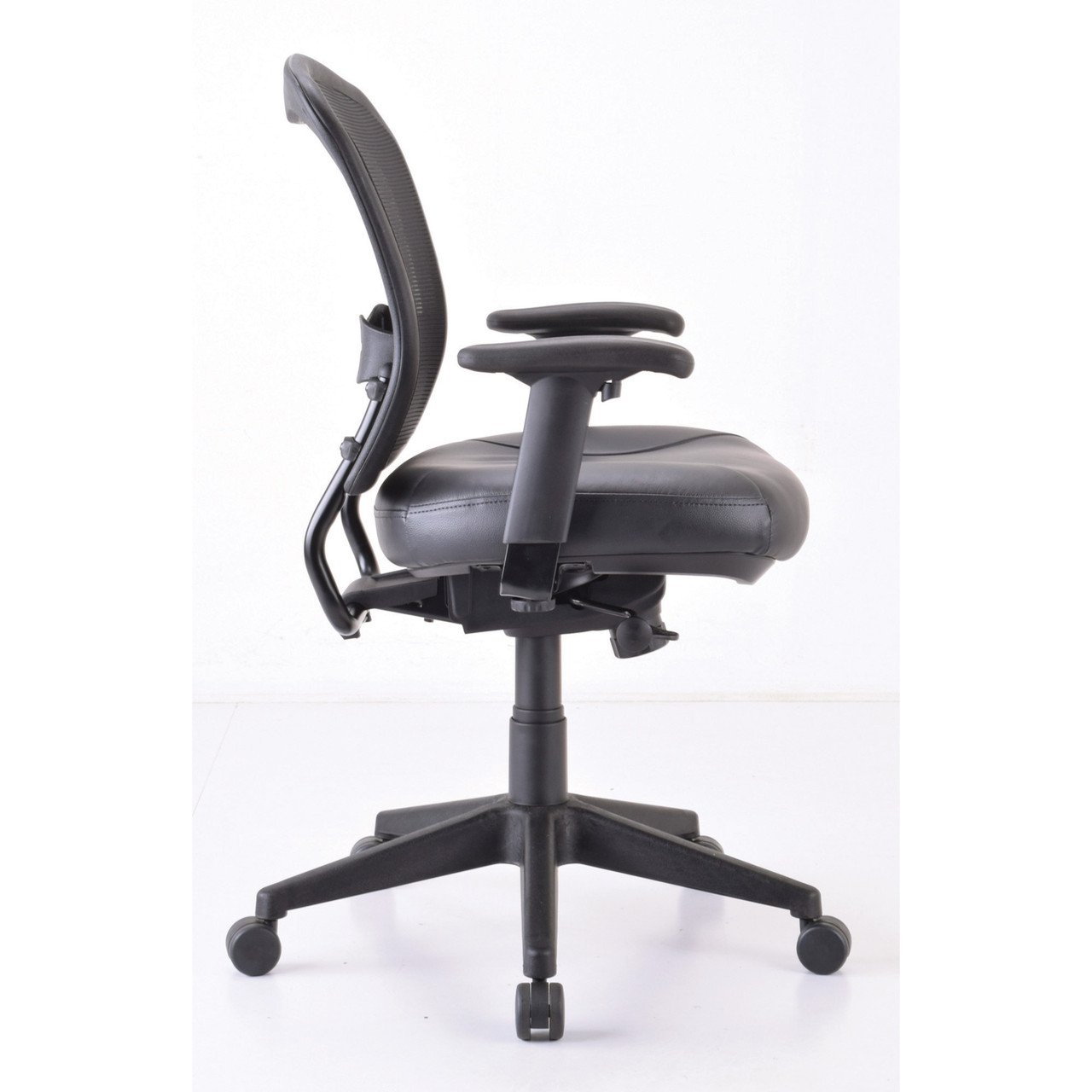 OfficeSource | Spice Collection | Mid Back Chair, Mesh Back, Black Leather Seat & Black Frame