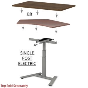 Make your office space more inviting by investing in this electric single post adjustable base offered by OfficeSource. This adjustable base offers a high level of adjustability and you can accommodate the height of your workstation by installing this single post base. It comes with a standard non-programmable remote. This adjustable base works with 120 degree table tops as well as PLT table tops with the dimensions of 30” by 42”. This adjustable base has the capacity to adjust the height of a tabletop from 25” to 43 3/8” high.