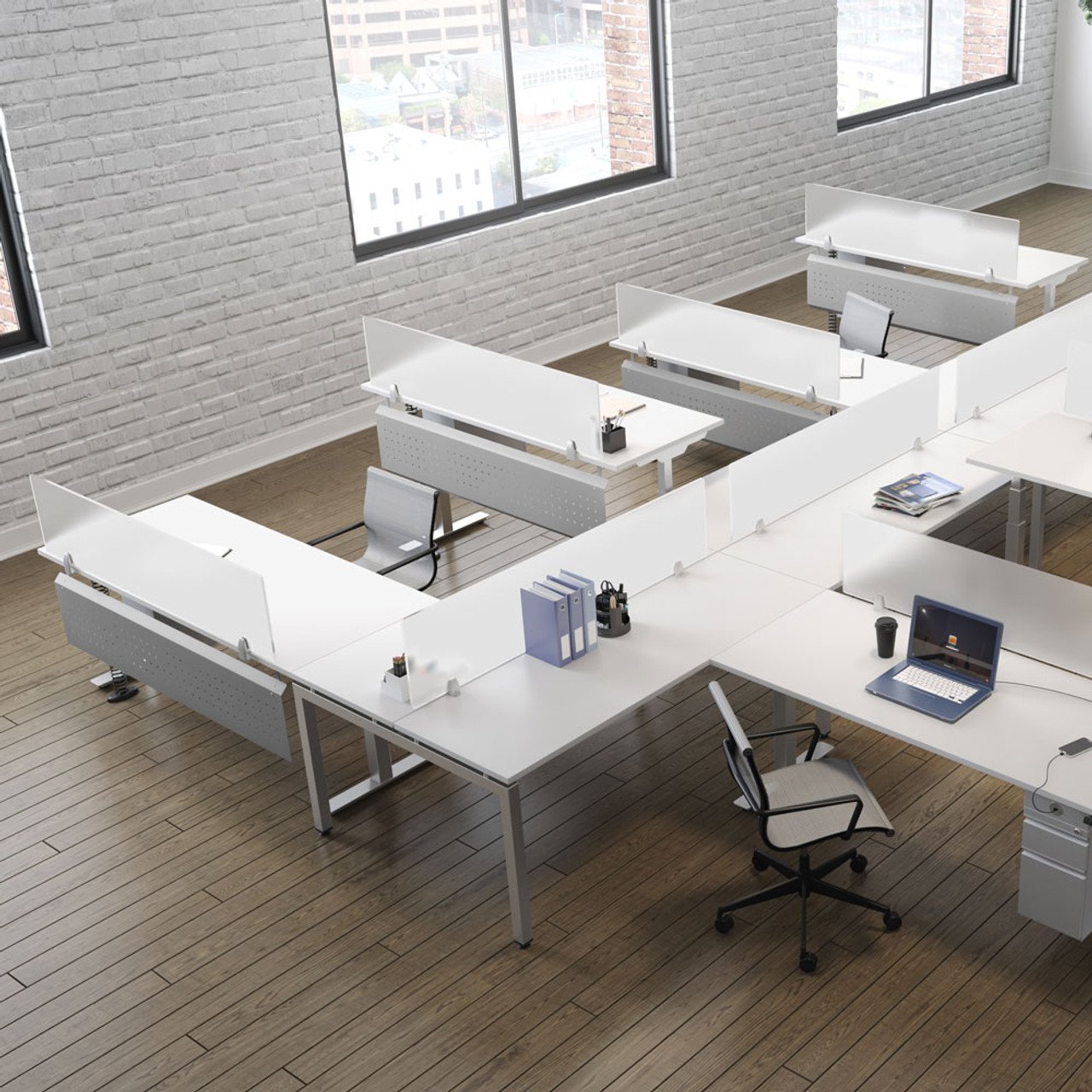 Create an office space that offers all of the ergonomic and overall health benefits, while offering you the full functionality that you are looking for. There are a number of great benefits that come from periodic standing while hard at work. This add-on to your standup desk will offer a bit of privacy for person seated at his or her desk. This modesty panel offers a modern perforated design that will ensure it looks great once it is in place. This panel is offered in three finish options, to include white, silver, and black. This will allow you to customize your work space.