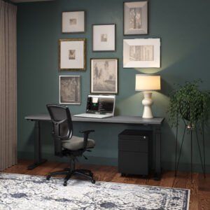 This deluxe electric base can accommodate 30″D tops. With two motor and three stage legs, this base is both sturdy and efficient. Able to hold up to 350lbs, you can feel confident that you will have a strong place to work all day long. The base also comes with a standard remote, that makes it easy to move the base up and down. Get on your feet at work, when you choose this black or silver deluxe electric base, perfect for our standing desks.