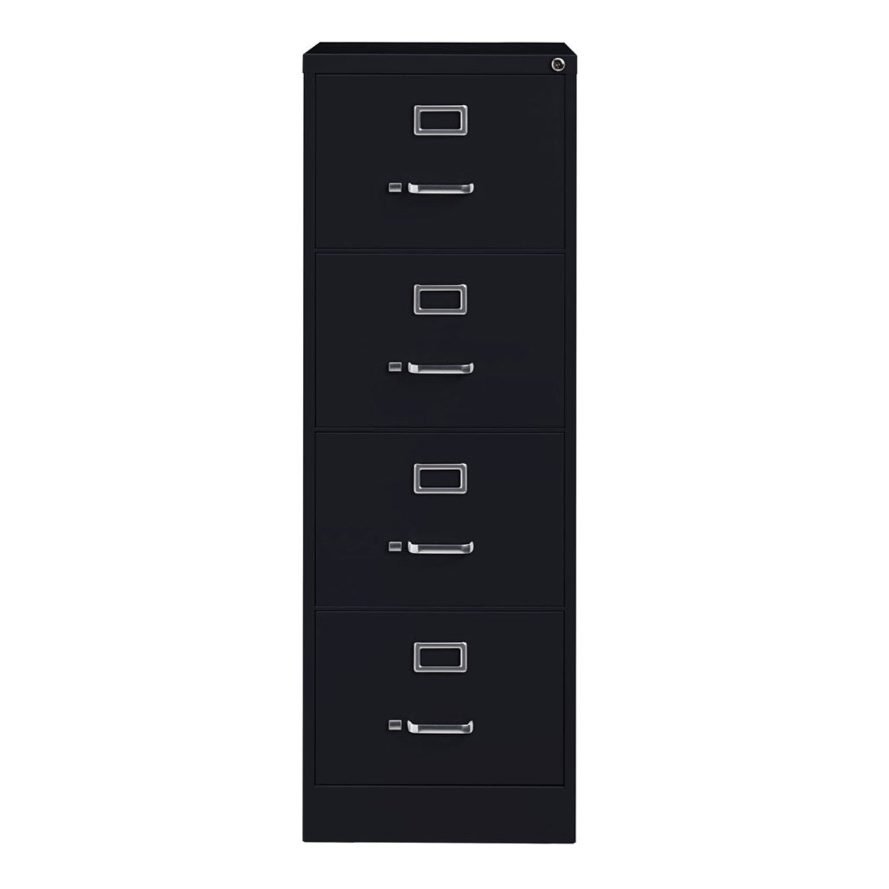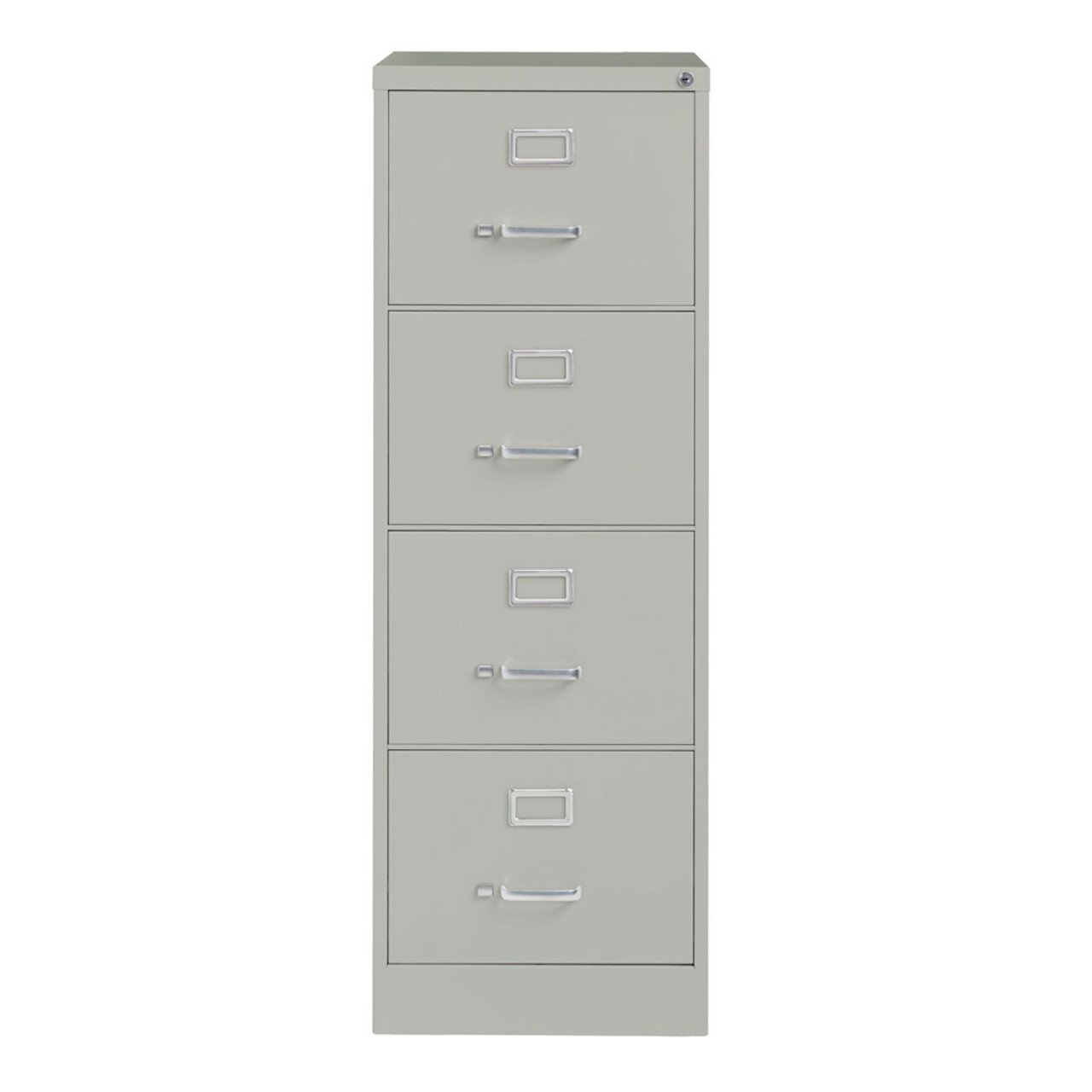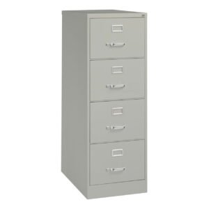 26.5-inch deep four-drawer, legal width, commercial grade vertical file cabinets are perfect for business, educational, or personal offices. These cabinets feature a classic design and are constructed with high quality durable materials that are suitable for heavy-duty use. Ships fully assembled and is ready to accept legal width hanging file folders. Non-porous surface is easy to clean and disinfect. Each drawer includes full extension ball-bearing slides for smooth drawer action. Even fully loaded, these drawers open with ease. Adjustable follower blocks keep files upright. The aluminum handles and label holder are durable and functional making it easy to access and label drawer contents. The included core-removable lock allows cabinets to be keyed alike. Designed to meet or exceed ANSI/BIFMA industry standards for performance and workmanship. Made with 28% total recycled content. Backed by a Limited Lifetime Warranty. TAA Compliant. Greenguard Gold certified for indoor air quality.