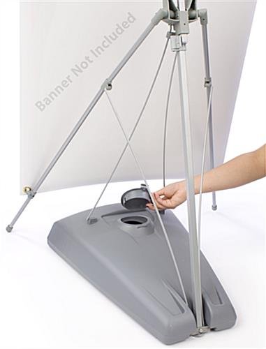 Unlike other heavy-duty banners, such as exhibit displays and retractable stands, these banner stands are fabricated from lightweight aluminum with plastic connectors. To ensure that the unit stays in place, we include these banner stands with a heavy-duty, lightweight plastic water base. The water base can hold approximately 3 gallons of water, providing more stability during moderate weather conditions. These lightweight banner stands allow you to easily transport your banner stands to and from any event. Whether you are attending a trade show or conference meeting, these banner stands will be ideal for you. You can easily assemble and display the banner stands in seconds!