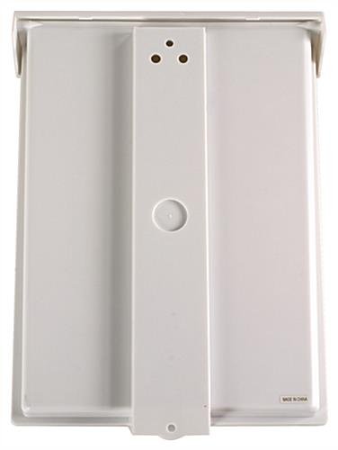 This outdoor literature display is fabricated out of durable white plastic. The outdoor literature display, also known as an information holder, has a hinged top lip, to protect brochures from inclement weather. The brochure display, outdoor literature holder is semi-waterproof because there are no sealed rubber gaskets, though little, if any, water enters the pocket during rain storms. This is the most popular outdoor literature display on the market today! We provide this high quality outdoor literature display to you for an economical price!