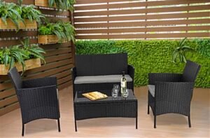 Purchase this outdoor sofa and chair set as a way to invite your patrons to enjoy their favorite latte or beverage. Update the look of your restaurant patio, or bistro with this 4-piece durable synthetic rattan lounge set, which includes loveseat, two armed seats, and a coffee table. This outdoor sofa and chair set features a steel frame, all-weather dark brown synthetic rattan, and removable seat cushions and machine washable. Whether used inside or outside, this durable synthetic rattan lounge set is a must-have for your restaurant, café, or tradeshow space. Try setting these pieces together or use the set of two armed chairs wherever extra seating is needed. Create an enticing atmosphere that patrons will want to visit when you place this sofa and chair set with coffee table in your establishment.