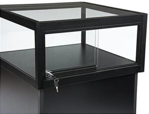 This LED display case pedestal is a beautiful way to showcase your products with tempered glass and soft lighting construction. Resting on a MDF base, the glass top cabinet is framed in black aluminum and can withstand even the busiest of environments, from stores to museums. Every illuminated pedestal comes preassembled, with the lighting strips running along the interior of the cabinet – all that you need to do is plug it in! The glass top box is accessed through rear sliding glass doors, which can be locked for additional security. With a neutral black finish, the base will surely match well with your other fixtures. Add this pedestal to your place of business for a stylish showcase of your valuable merchandise.