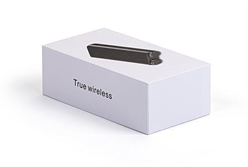 This 2-in-1 power bank with earbuds gift set includes full color printing to feature your custom logo, making it a great personalized giveaway. Our true wireless headphones offer three hours of audio and voice; they’re easy to charge with the included magnetic 2100 mAh charging case battery. The high capacity power bank with earbuds gift set comes in a non-branded box and includes a travel pouch, a USB charging cable, three different sized earplugs, and an easy set-up user manual. These premium earphones with brand-enhancing charging case fully charges in about two hours and provides up to 2100 mAh of backup battery power. The true wireless headphones feature hands-free audio controls and up to 30 feet of Bluetooth operating range. Customize our power bank with earbuds gift set with your logo and create a branded favor that people will treasure.