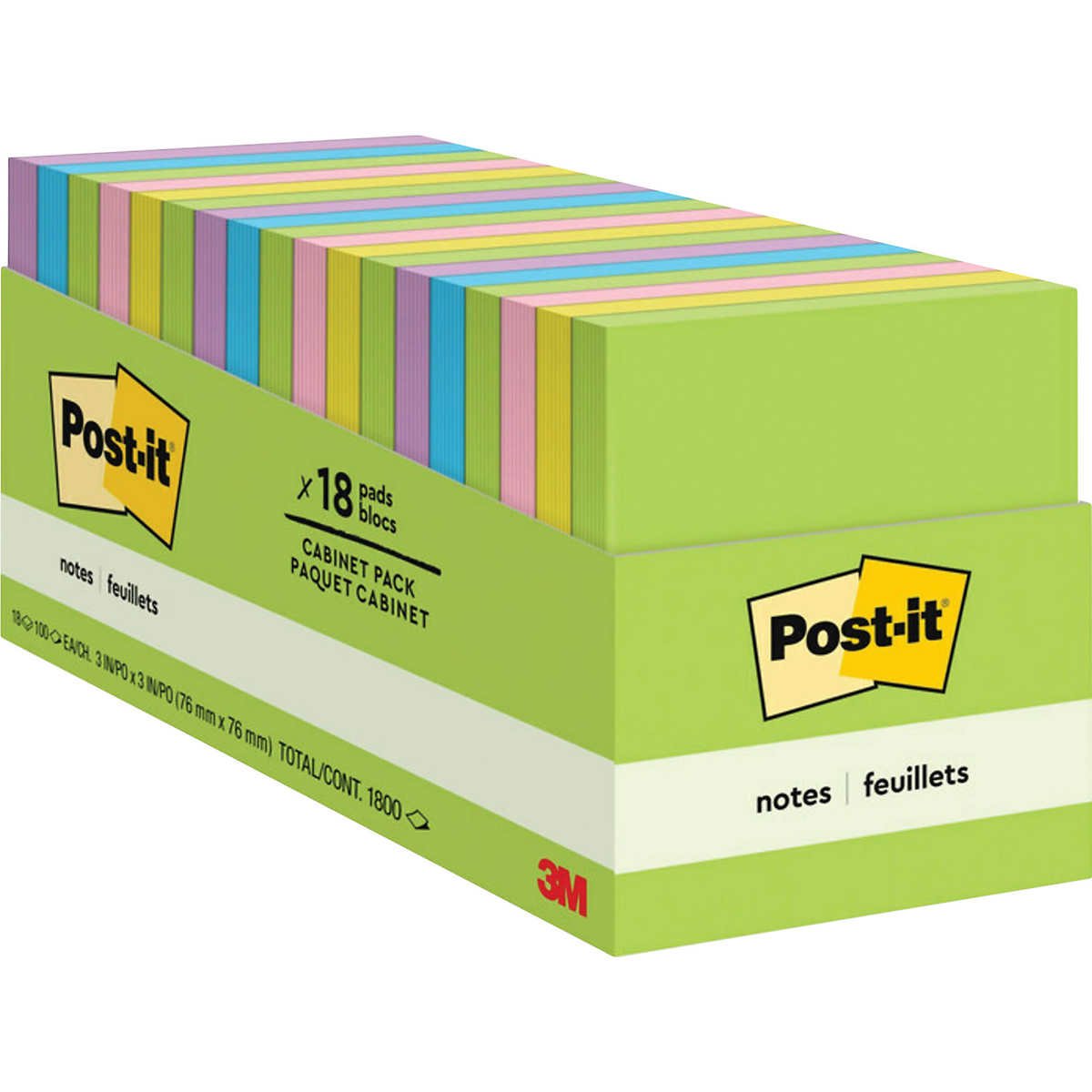 Post-it Notes stick securely and remove cleanly, featuring a unique adhesive designed for use on paper. The 3 in. x 3 in. size is great to call out important information or leave notes in calendars or planners. Step into a lush garden of color to help your ideas bloom with the Floral Fantasy collection. Cabinet pack is great to keep notes on hand in home or at the office. Post-it Notes are recyclable, and the paper in Post-it Notes is sourced from certified, renewable and responsibly managed forests.