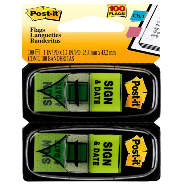 Save yourself or your employees the trouble of having to provide instructions for multiple signature placement. These SIGN & DATE HERE arrow flags with a black border do all the work for you. For convenience and quick application, the removable and repositionable flags are housed in a pop-up dispenser- so you will always have them at hand.