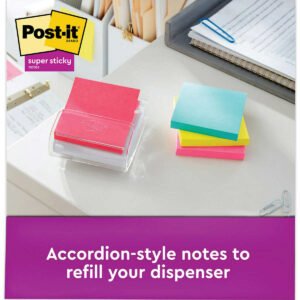 Post-it Super Sticky Dispenser Notes in 3 in x 3 in feature 2x the sticking power. These accordion-style notes are specially designed to work in Post-it Note Dispensers, and allow you to always have a note nearby to capture great ideas. Unique adhesive reliably sticks and re-sticks so your message can stay front and center. Move your notes with you throughout the day. Use for notes or reminders on doors, windows or walls. Ideas are out of this world with the electric colors of the Supernova Neon collection. Cabinet packs are great to stock up your work area or classroom. Post-it Super Sticky Dispenser Notes are recyclable and the paper is sourced from certified, renewable and responsibly managed forests.