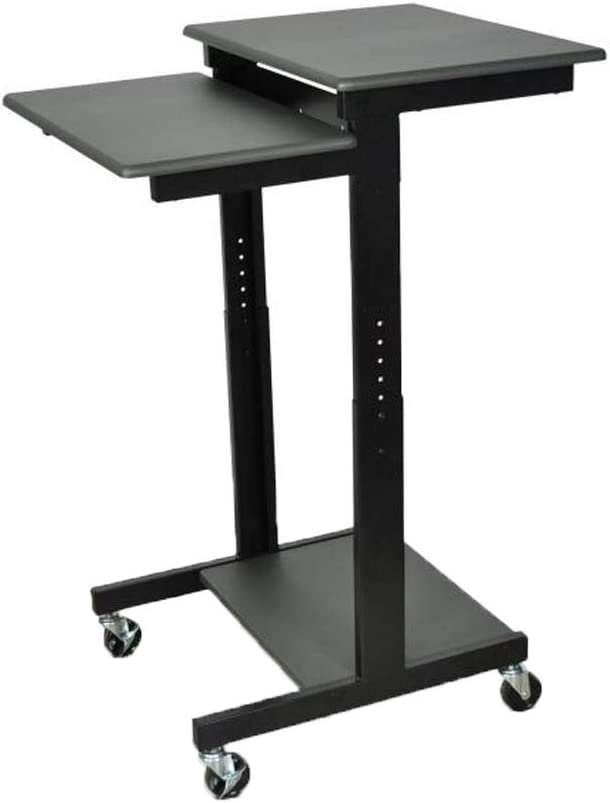 WPSDD3 Wood Multimedia Workstation Cart, 38 inches High; Durable Black/Gray Laminate Finish