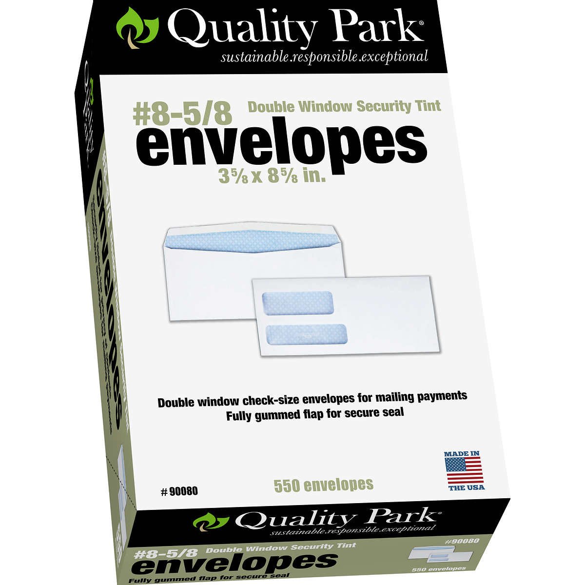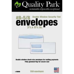 Quality Park #8 5/8 Double Window Tinted Check Security Envelope, 24 lb, White, 500 ct
