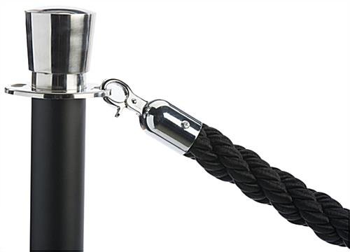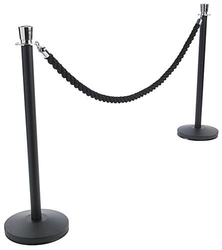 This black VIP rope has chrome hooks that clip to the dual-tone stanchions. Post and cable crowd control barriers are ideal for hotels, concert venues, banks or museums. The twisted nylon rope comes in black. The chrome hooks attach to the 4-way adapter on the stanchions, which provides multi-configuration options. Rope and post barriers are easy to assemble for immediate usage. The cable separates the stanchions 6ft apart. Crowd control has never been easier with this barrier system.