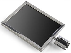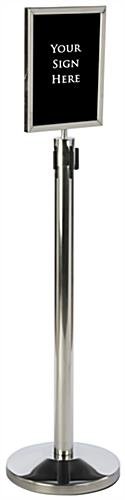 This silver 11” x 14” stanchion sign holder is ideal for large parties & events. Display custom messages to your attendees atop a retractable crowd control post to keep order in busy environments! The stainless steel sign holder features a double sided frame with 2 anti-glare lenses to protect your graphics while on display which can be printed right from most home or office printers! Additionally, the thick PVC insert can be printed on directly! Bring the insert of the sign holder to your local sign shop to have a permanent message applied. Each event display is designed to pair perfectly with our RCCSTSPL01 retractable crowd control post (sold separately)!
