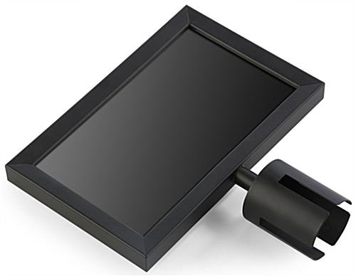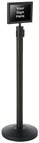 This 11” x 7” stanchion sign holder coordinates with our black RCCSTBLK01 QueuePole.Economy retractable crowd control pole (sold separately). Each double sided poster display accommodates graphics easily printed from any printer while offering readability from any angle with non-glare lenses! Crafted from steel, the black sign holder is powder coated creating a sleek and durable finish that complements most design schemes. Display messages such as “Please Wait To Be Seated” or “Line Forms Here” to maintain an orderly crowd in busy locations! The sign holder is the perfect signage to pair with your RCCSTBLK01 crowd control fixture. Use the queue stand to attract attention to your message for a restaurant, bank, night-club, movie theater or many other locations!