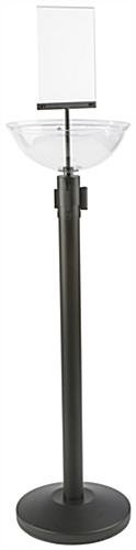 This blue stanchion and post with bowl is a great solution for catching a customer’s attention in the best impulse buy location, while held captive in a line. Queue your customers while also gaining well positioned product placement with a crowd control stand and belt. Display bulk merchandise within the bin attachment affixed to the top of each retractable stanchion, and promote items with custom graphics framed inside the sign holder. Product baskets are a great solution which helps to convert waiting time into shopping time for customers. The retractable belt measures 6.5’ in length, which is beneficial for smaller cash queue lines, and can be paired with more stanchion fixtures to create a longer crowd control border. Create a great merchandising display with this stand and basket combination!