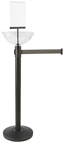 This gray stanchion and post with bin has a 6.5’ long retractable belt for smaller crowd control areas, such as register lines. Featured with this system is a large merchandising bowl, making it simple to display last minute items during cash out. Place bulk merchandise such as tissue packets, hand sanitizers, or candies inside the basket on top of the assembly control stanchion, and promote those products with a customized graphic framed inside the 11” x 7” sign holder. Clearly display items to increase impulse sales using this crowd management system with a retractable belt! Use this stanchion in retail and commercial stores to manage customers and help produce more profit. This pole is sold in sets of two.