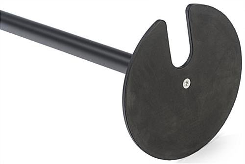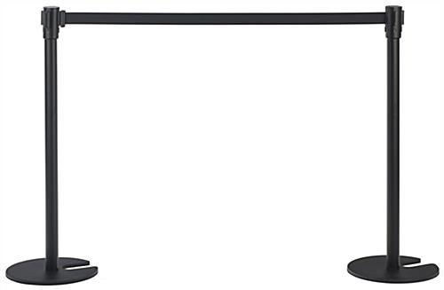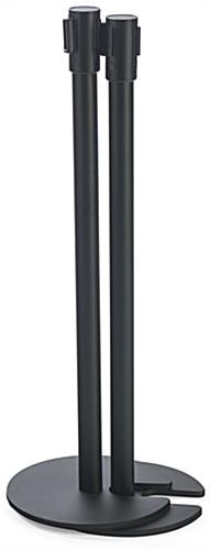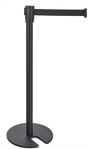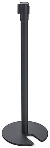 This black stackable stanchion is easily stowed away in storage when not in use. The crowd control post is ideal for banking centers, hotels, night clubs and many other locations in need of maintaining order in heavily trafficked areas. Each 41″h stanchion with a 6.5’ retractable belt which can connect to another post via the extendable band. The crowd control barrier features a contemporary matte powder coated finish compatible with the color scheme of any environment. Traditional queue posts are bulky and take up a lot of room in storage areas when not in use. Featuring cutouts in the base of each unit, the stanchion available here can be easily grouped in multiples together, taking up much less floor space in your facility. It is recommended not to extend the retractable belt beyond 6.5’ to ensure safety.