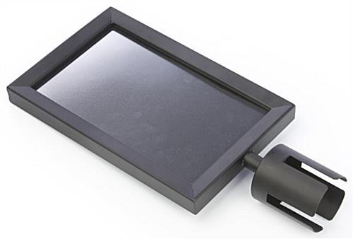 This stanchion sign is a perfect addition to your QueuePole.Economy stanchion posts. A stanchion sign, also known as a stanchion frame, displays your important message or messages in virtually any location. This black powder-coated steel stanchion sign can hold ‘WELCOME’ or ‘THANK YOU FOR YOUR BUSINESS’ signs at your local bank. Affix a stanchion sign to a stanchion at a museum to warn patrons ‘DO NOT TOUCH THE DISPLAYS’. A stanchion sign are great for many more locations, like ticketing lines, restaurants, retail stores, concession stands, nightclubs and much more!