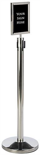 This 8.5” x 11”” stanchion frame is the perfect accessory to accommodate our RCCSTSPL01 crowd control system (sold separately). The metal sign holders exhibit posters which can be printed on standard sized paper from an office or home computer! The double sided stanchion frame features protective anti-glare inserts to prevent scratches and tears as well as to provide optimal readability for your message. The metal sign holder also includes a thick PVC backer which can be easily transformed to permanent signage by bringing the part to your local sign shop and having a graphic applied! Display posters with the stanchion frame to maintain an orderly crowd during large events or parties. Each portrait mounted sign topper is crafted from polished stainless steel for a sleek look and durability in high traffic locations!
