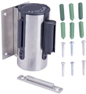 Each wall mounted retractable barrier, that is a line stanchion, comes with the required hardware. Mount this unit to several different surfaces securely. A wall mounted retractable barrier, that is stainless steel, can be paired with other queue poles. Attach this mount to multiple floor-standing stanchions. Each wall mounted retractable barrier, also known as a queue pole, is sold at an economical price. Purchase these stanchions for movie theaters, sports games, and other events. A crowd control unit, wall mounted retractable barrier will keep high traffic areas organized!