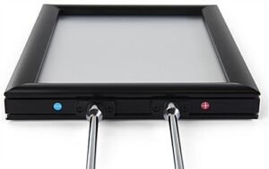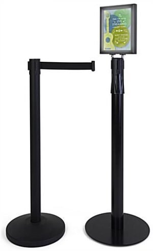 This stanchion with LED sign holder is double-sided, so you can print and display a variety of 8.5″ x 11″ ads, promotions, and events in corporate offices, shopping centers, concession stands, and more. The sleek black barrier includes one retractable belt and three belt receivers to link to other Queue.Pole Economy or Value posts. Our double-sided stanchion with LED sign holder has a snap frame that opens on both sides, making it effortless to apply your 8.5” x 11” graphics. To assemble, simply place the topper onto the barrier, guided by the + & – stickers on the pole and lightbox. This crowd control stand ships with a pre-installed rechargeable battery that will last for 6-7 hours of consistent use and can quickly be plugged into a wall when needing to be charged. The illuminated panels on the snap frame are excellent for events that take place at night, such as concerts, sporting events, and more. Use this modern stanchion with LED sign holder to not only maintain efficient crowd control but to create eye-catching advertising content in stadiums, event venues, retail stores, offices, and more.