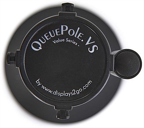 Red Retractable Belt Barrier with Black Concrete Weighted Round Base for Stability