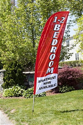 Replace your existing RE12BEDRD advertising banner with this 1-2 BEDROOM red sail flag for a fresh new look. Perfect for showing apartments, each swooper attaches to your ground spike for use outdoors for maximum curb appeal. Knitted polyester fabric construction offers fade resistance against the elements to keep the red sail flag looking vibrant over time.