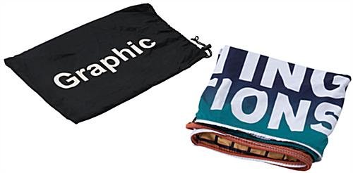 Ideal for promoting at trade shows and large events, this replacement counter graphic for BDR series arrives complete with its own carrying bag. Lined with silicone along both top and bottom edges, the custom fabric slides into the tabletop channel to stretch tight in place for a professional look. Full color dye sublimation is used to create the graphic, as this process has proven to keep its beauty through long-term use. The entire cover can be printed, allowing you to promote to visitors at any angle. Although a drawstring bag is provided to help keep the graphic clean, it can be machine washed if needed.