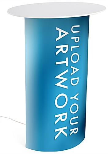This replacement graphic for CNT11DSGCP counter offers full color personalized dye sublimation printing for a vibrant and eye-catching advertising showcase at your next event. The design is printed on a soft polyester fabric that allows the LED lights from the pedestal table to shine through and illuminate your design. Our replacement graphic for CNT11DSGCP counter is easy to slide onto the display in seconds and can be secured at the top and bottom using hook and loop receptors.