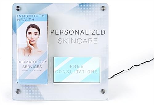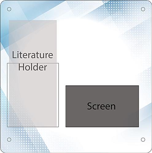 Make your brochures stand out with these replacement sign graphics for UVPRBRTBL1. Designed to fit specifically into the associated digital literature holder, this custom piece allows space for tri-fold pamphlets and the 7” multimedia screen. Utilize the space in your waiting room, lobby, or trade show booth and draw more attention with these replacement sign graphics for UVPRBRTBL1.