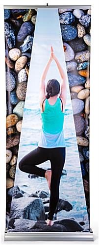 Our replacement roll up dimensional pyramid banner for DRBSP3479 is the perfect update to your existing signage display! This 32.5” x 89” vibrant, full color retractable panel is printed on premium vinyl-like material using a UV printing process. Easily install this replacement roll up dimensional pyramid banner to create an engaging display that is sure to gain the attention of passersby.