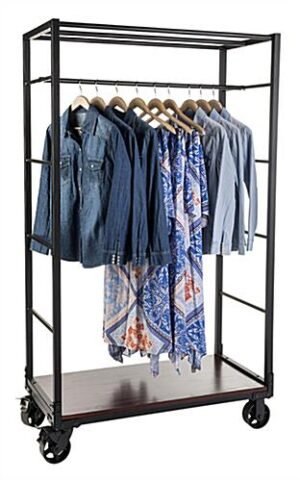 Industrial Wheeled Garment Display Rack with Removable Clothing Rod