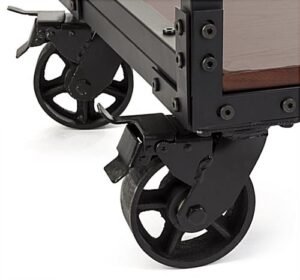 Style your retail store clothing with an industrial wheeled garment display rack. Two locks provide stability for the rolling fixture’s flat tread iron casters. Each rustic pipe wheeled garment display rack features a mahogany wood bottom shelf. Arrange clothing collections using the removable rail which installs along the ladder-inspired sides. Incorporate this rustic pipe fixture into your retail store for an urban style. The garment display rack provides an essential rolling organizer.