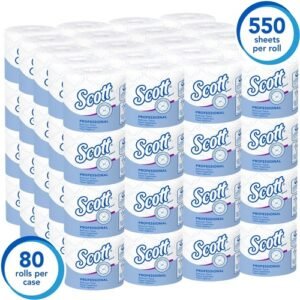 - 550 Sheets/Roll; 80 Rolls of Scott Professional Standard Roll Toilet Paper Rolls/Case; 44,000 Sheets/Case; 2-Ply; White; Individually wrapped rolls; with Elevated Design