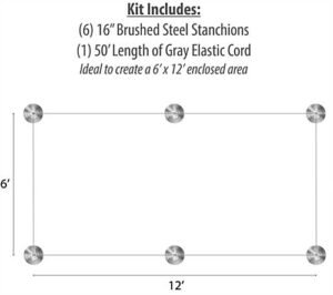 6-Stanchion Silver Low Profile Barrier Set with 50’ Gray Elastic Cord