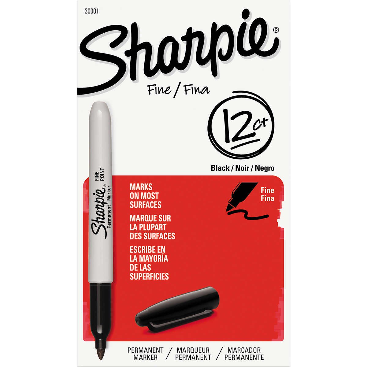 Sharpie Permanent Marker, Fine Point, Black, 12 ct