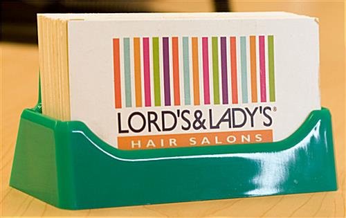 This teal business card holder can be used in offices, salons and trade show exhibits to help distribute your contact information. This accessory is meant for use on a desk, table or counter top. The desktop display, business card holder was designed with price in mind as it is made from acrylic and features a simple design. We have provided the open-style case with a unique teal shade of acrylic to best suit the promotional needs of a salon or trade show exhibitor. The teal color will help make your business card holder stand out on a crowded desk or table. This small portable unit is perfect for use in the office, at a trade show or offisite meeting or a conference. This business card holder, also known as a calling card display, can even be used in retail settings to hold gift cards or a doctor’s office to keep appointment reminder cards readily available.