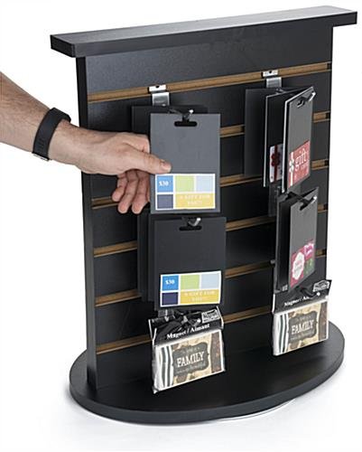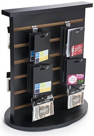 This counter slatwall spinner is great for promoting accessories or smaller products in your retail store. Given the 12 total channels, there is plenty of room for a variety of different items. The durable slatwall spinner will give you a chance to get the last minute sale on smaller products and accessories when positioned on the register countertop. A must-have for any retail store to promote the impulse items that could get lost on larger shelving spaces. Place the slatwall spinner on any countertop or register space for optimal sales results. Don’t sweat a tedious set up, as this store fixture assembles in 3 easy steps.