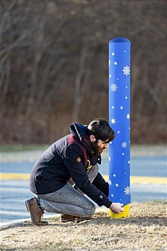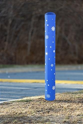 Slip-On Seasonal Bollard Cover, Stretch Polyester w/ Elastic Opening – Blue Snowflake